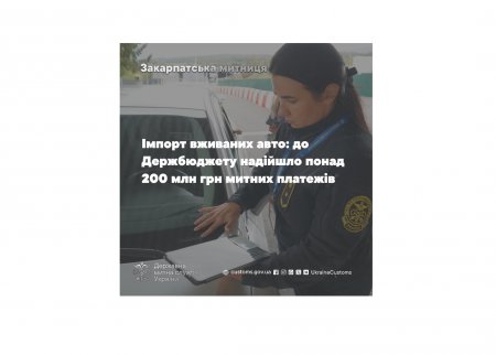 Імпорт вживаних авто: до Держбюджету надійшло понад 200 млн грн митних платежів