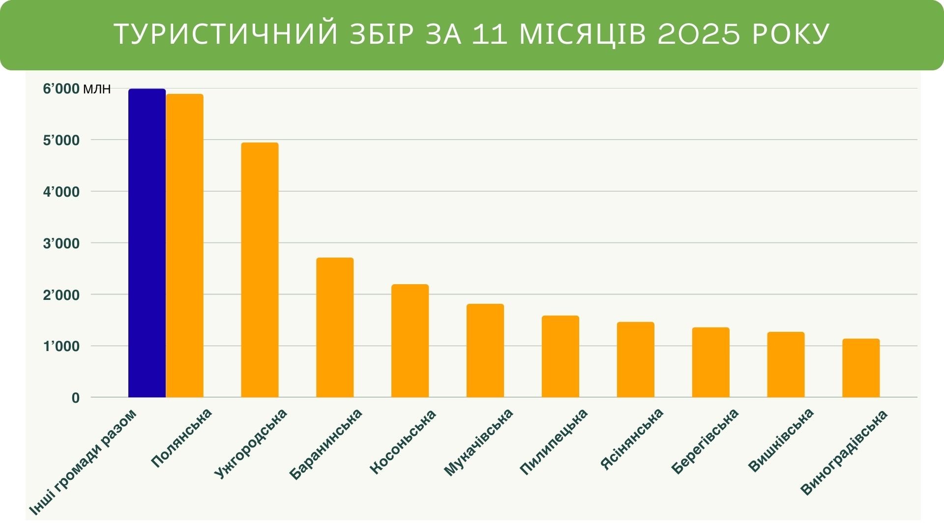 За 11 місяців 2025 року на Закарпатті сплатили понад 30 млн грн туристичного збору