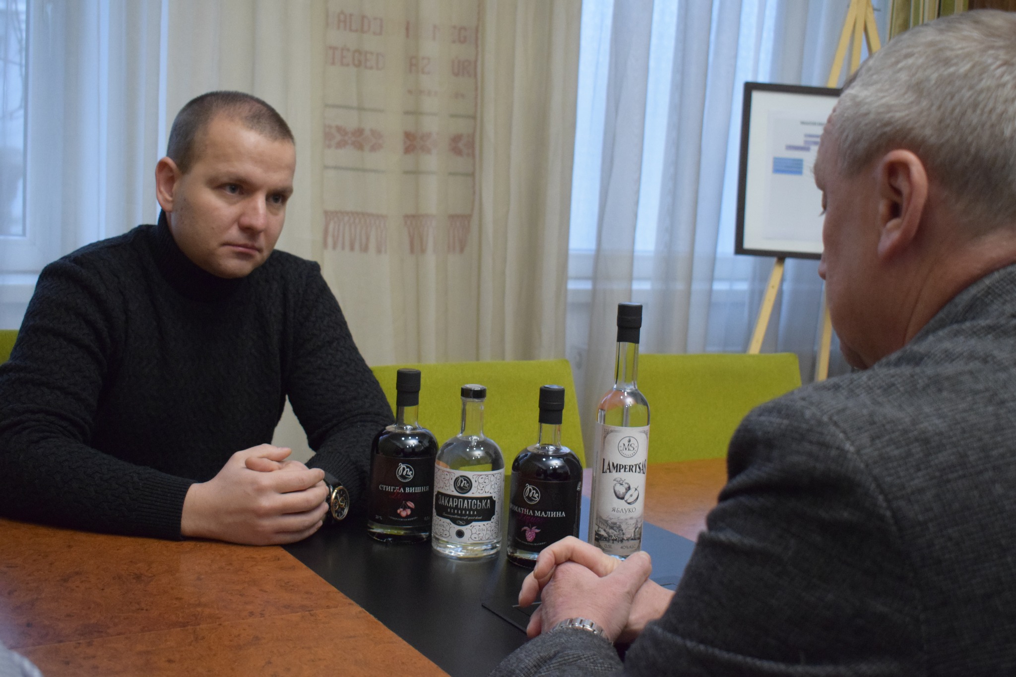 "Зустрівся з керівником нового бізнесу – ТзОВ «Національна товарна група» Ласло Майороші. Він отримав ліцензію на виробництво фруктових дистилятів та алкогольних напоїв за адресою: вул. Б. Хмельницького, 125А.