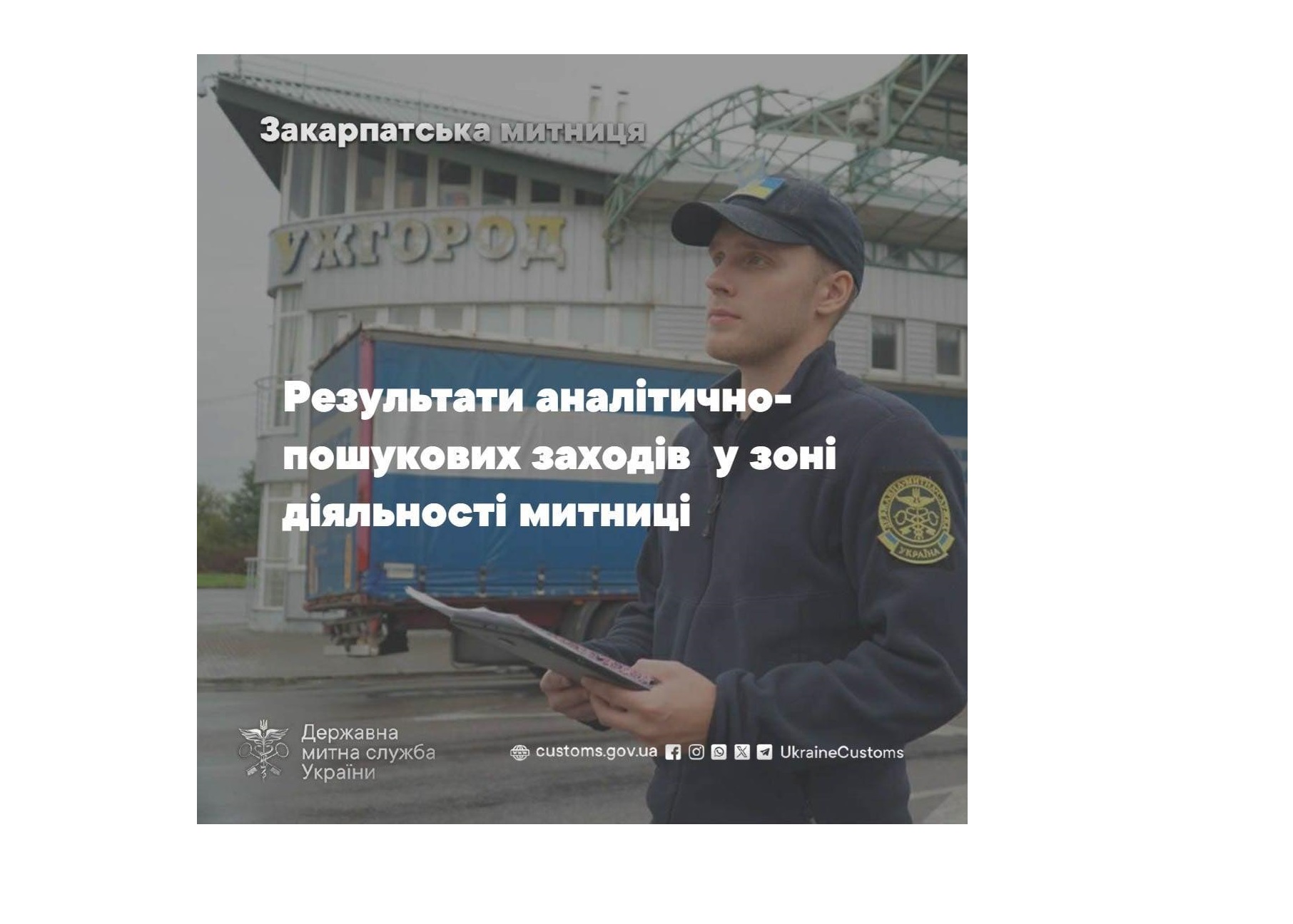 Щоденна аналітично-пошукова робота у Закарпатській митниці направлена на виявлення та припинення незаконного переміщення товарів зі сумнівними зовнішньоекономічними операціями, приховуванням від митного контролю достовірних відомостей щодо експортних та імпортних вантажів, а також «комерційної» гуманітарної допомоги.