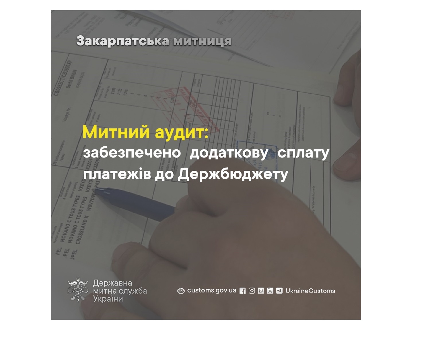 За результатами проведеної у 2025 році 141 документальної перевірки з дотримання платниками податків законодавства України з питань митної справи, закарпатські митники встановили заниження грошових зобовʼязань зі сплати митних платежів на загальну суму майже 32,5 млн грн.