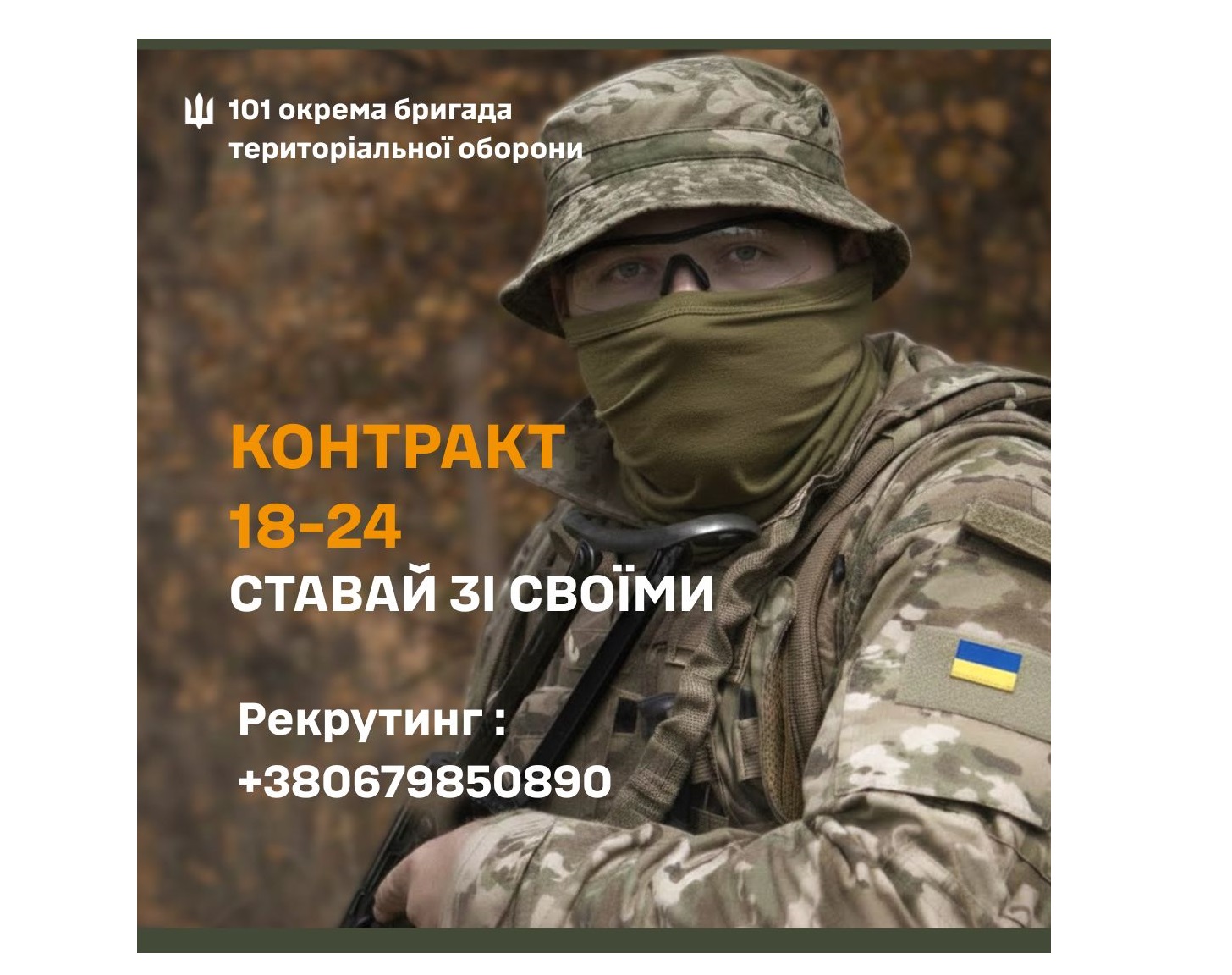 Для деталей — звертайся до відділення рекрутингу 101 бригади ТрО за тел.: +380679850890