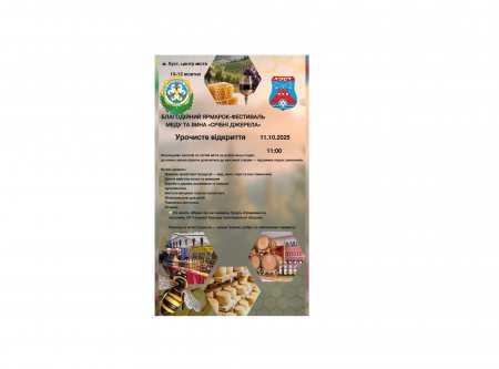 В Хусті відбудеться благодійний ярмарок— фестиваль меду та вина «СРІБНІ ДЖЕРЕЛА»
