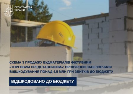 Схема з продажу будматеріалів фіктивним «торговим представником»: прокурори Закарпаття забезпечили відшкодування понад 4,5 млн грн збитків до бюджету
