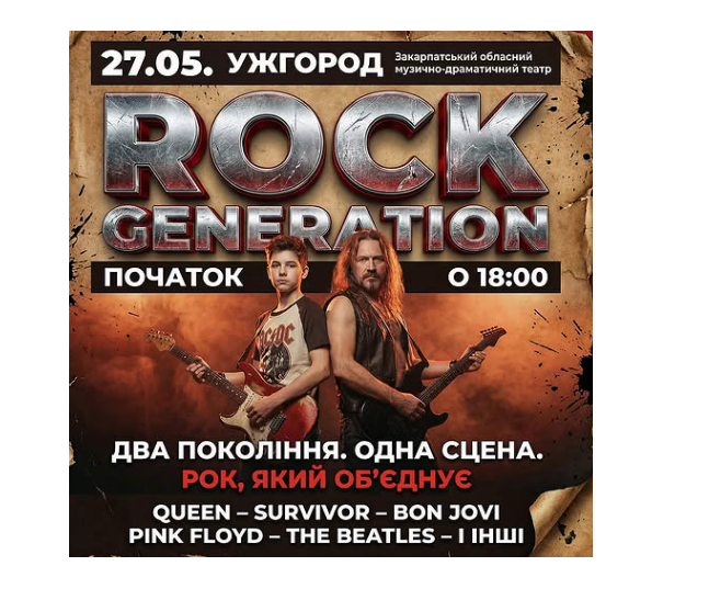 Програма концерту складається з легендарних рок-композицій, які об’єднують покоління: