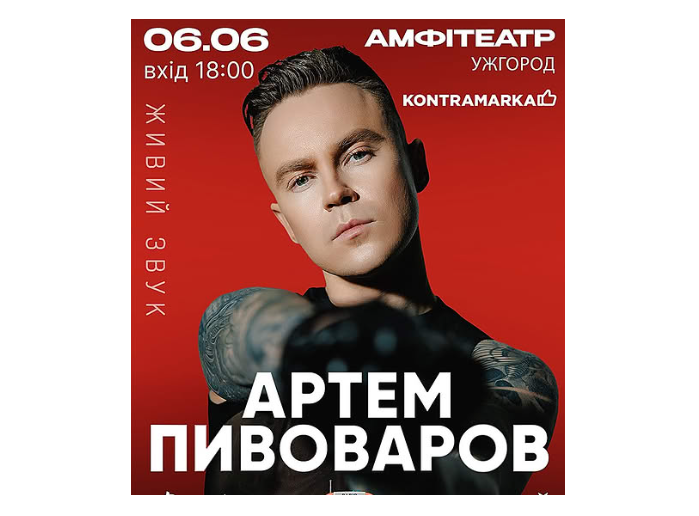 6 червня в Амфітеатрі в Ужгороді відбудеться концерт одного з найяскравіших і найочікуваніших артистів сучасної української сцени - Артема Пивоварова.