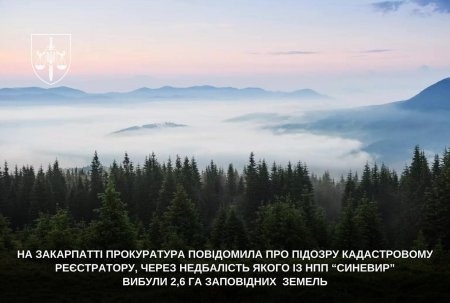 На Закарпатті повідомлено про підозру кадастровому реєстратору через втрату 2,6 га земель НПП «Синевир»