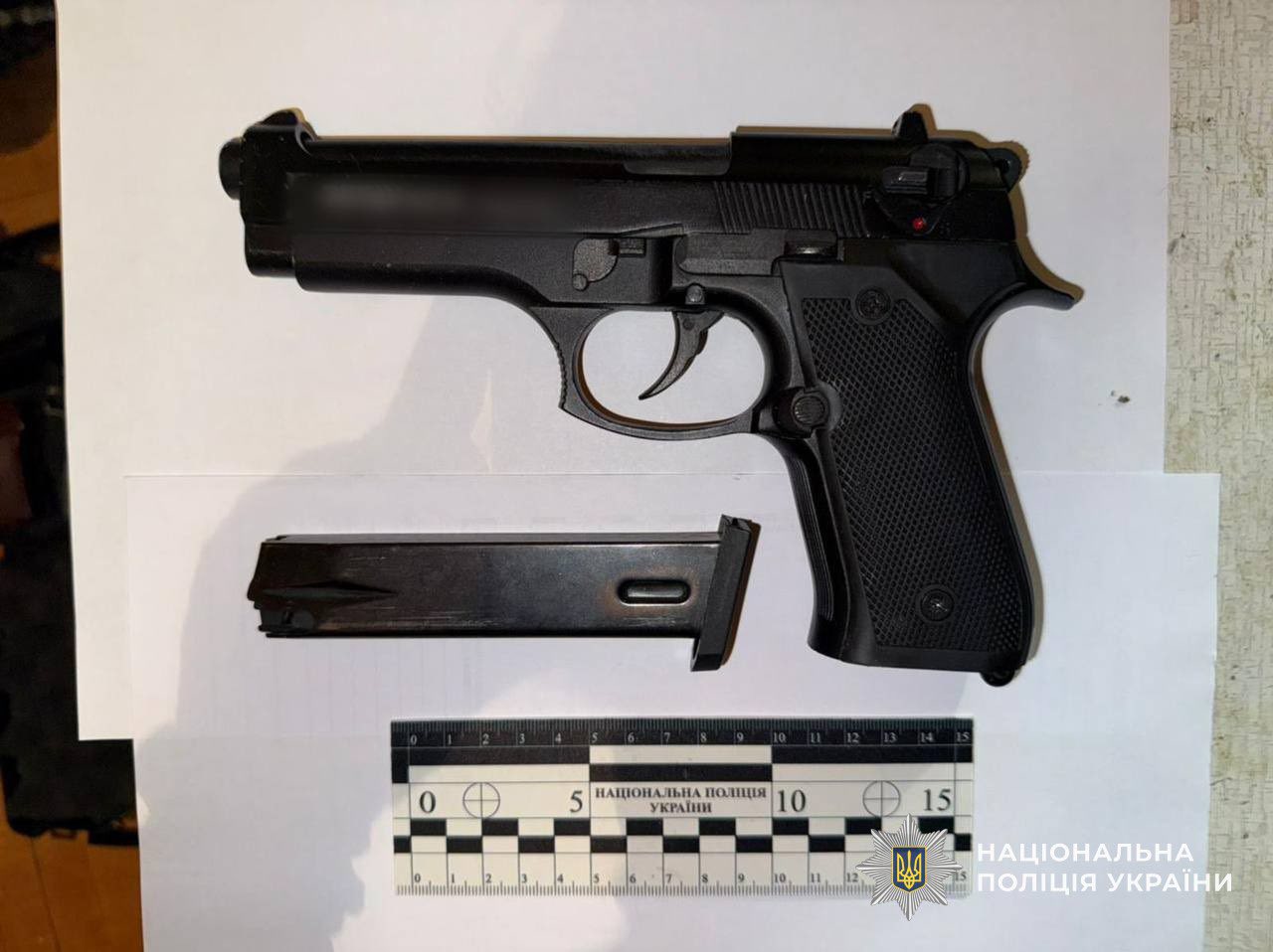 Слідчі спільно з інспекторами-криміналістами провели детальний огляд місця події. З квартири фігуранта вилучили пістолет із маркуванням «Retay mod 92 cal. 9mm P.A.K.», ще один пістолет у розібраному стані, а також рушницю з оптичним прицілом. Усю вилучену зброю досліджуватимуть експерти.