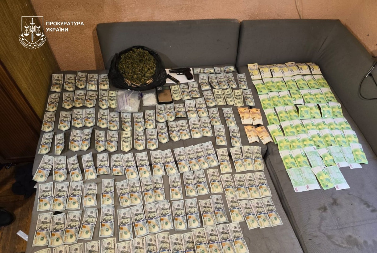 У ході санкціонованих обшуків правоохоронці вилучили майже півкілограма марихуани та психотропів, зброю, готівку у національній та іноземній валютах. Наркотики вдома переховували усі члени угруповання.
