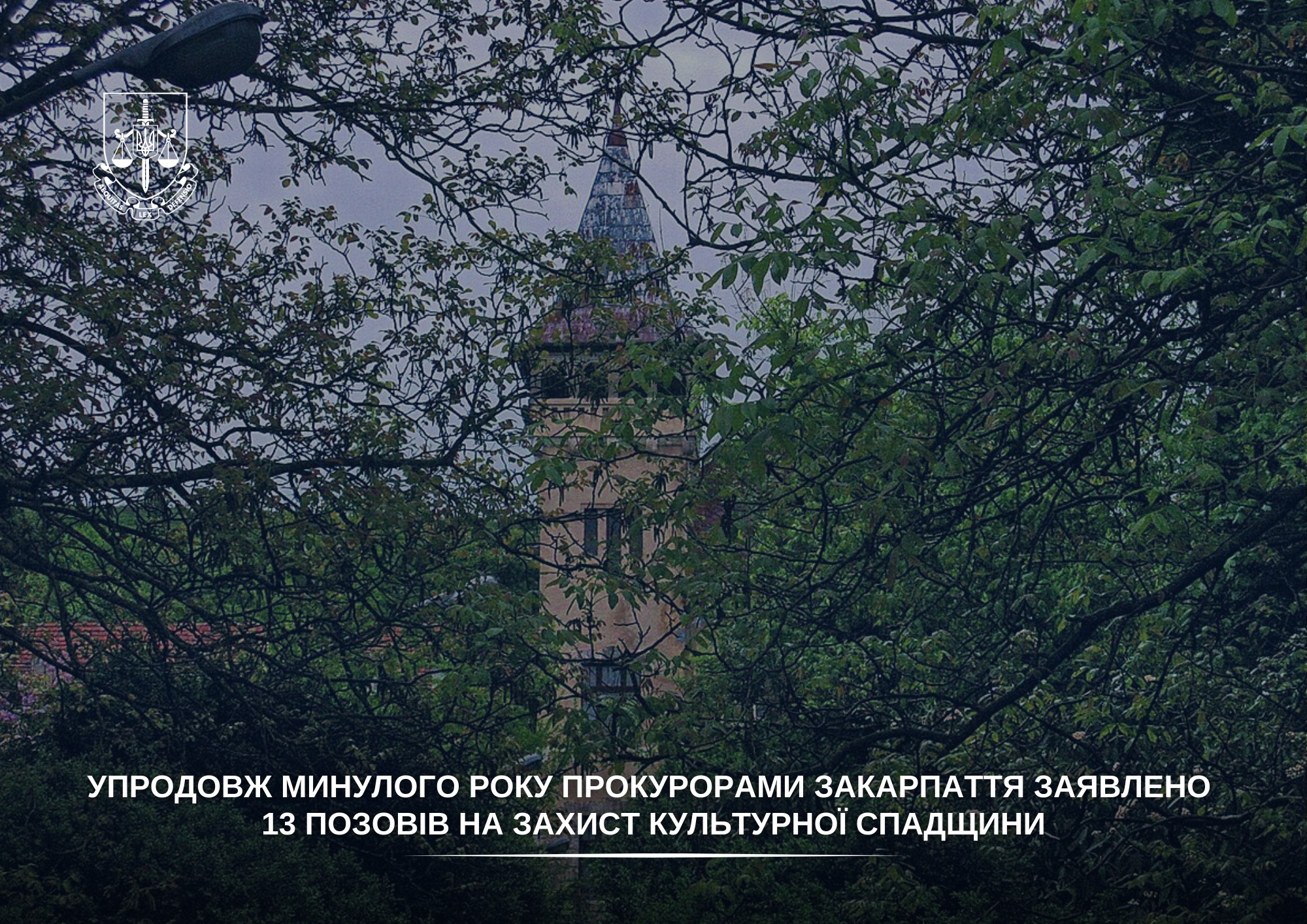 Йдеться про позовні заяви щодо зобов’язання виготовлення облікової документації, занесення об’єктів до Державного реєстру нерухомих пам’яток України, укладення охоронних договорів та забезпечення їх виконання. 10 позовних заяв прокурорів на вказаному напрямку за минулий рік судами задоволено.