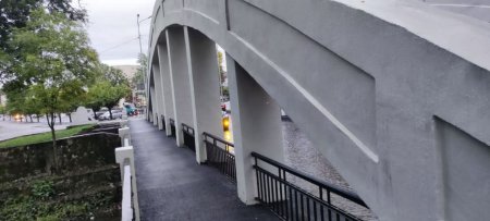 Паралельно відбувалися роботи внутрішньої частини мосту. Там теж зроблено піско - струменеву обробку, потім поштукатурили й пофарбували.