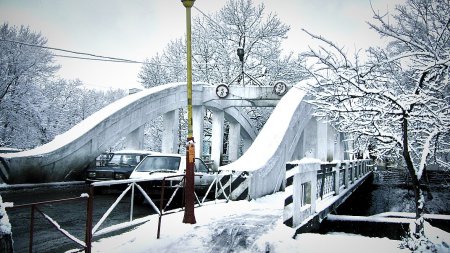 Конструктивно він має тільки дві опори — на берегах і має довжину 50 метрів. Збудований у вигляді арки, яка окрім естетичного виду виконує важливу практичну роль — навантаження, що передаються з прогонових конструкцій опорі, мають не тільки вертикальну, а й горизонтальну складову.