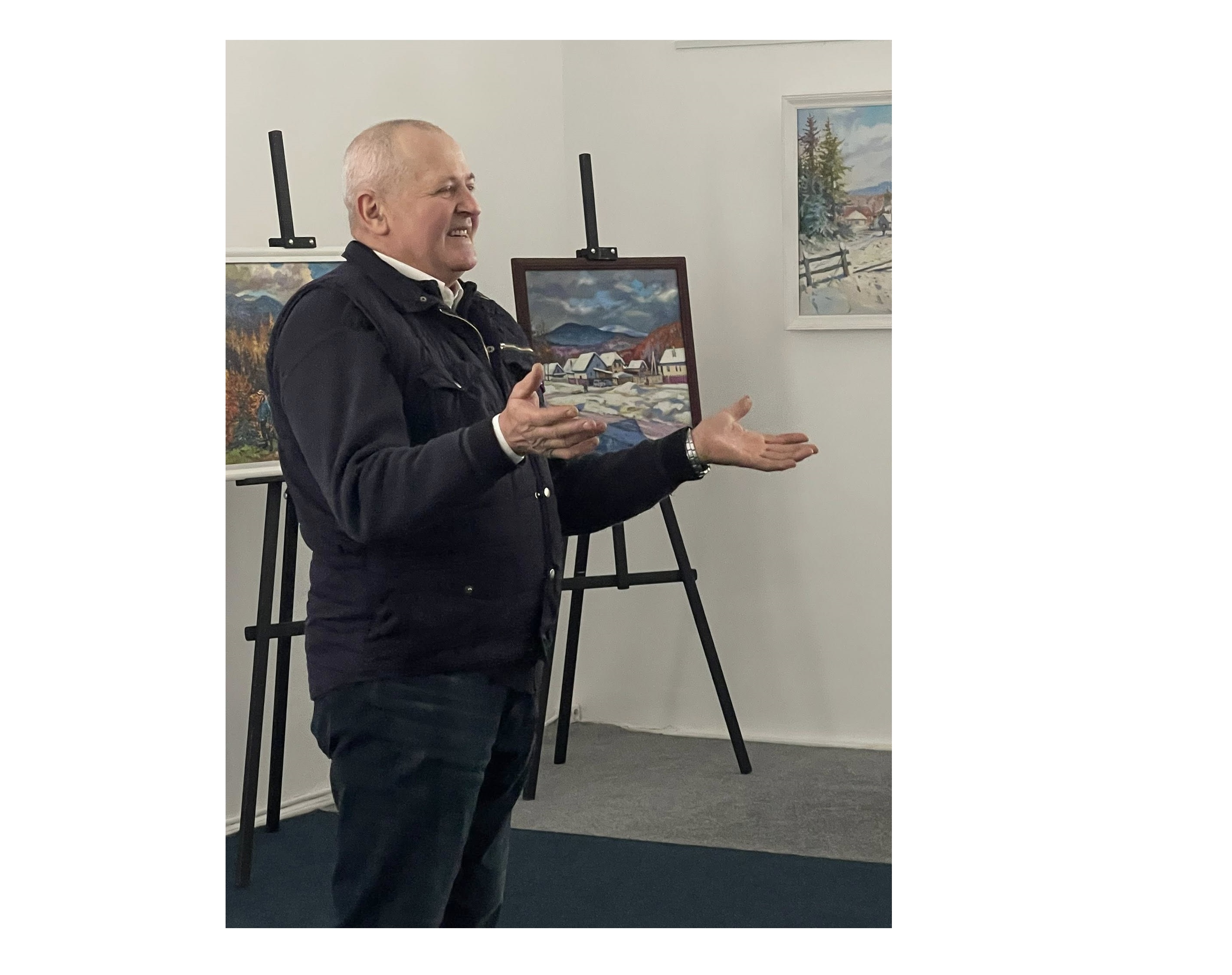 В експозиції під назвою «Подорожуючи Карпатами» представлено понад 50 живописних робіт митця, у яких він тонко передає велич і красу карпатської природи.