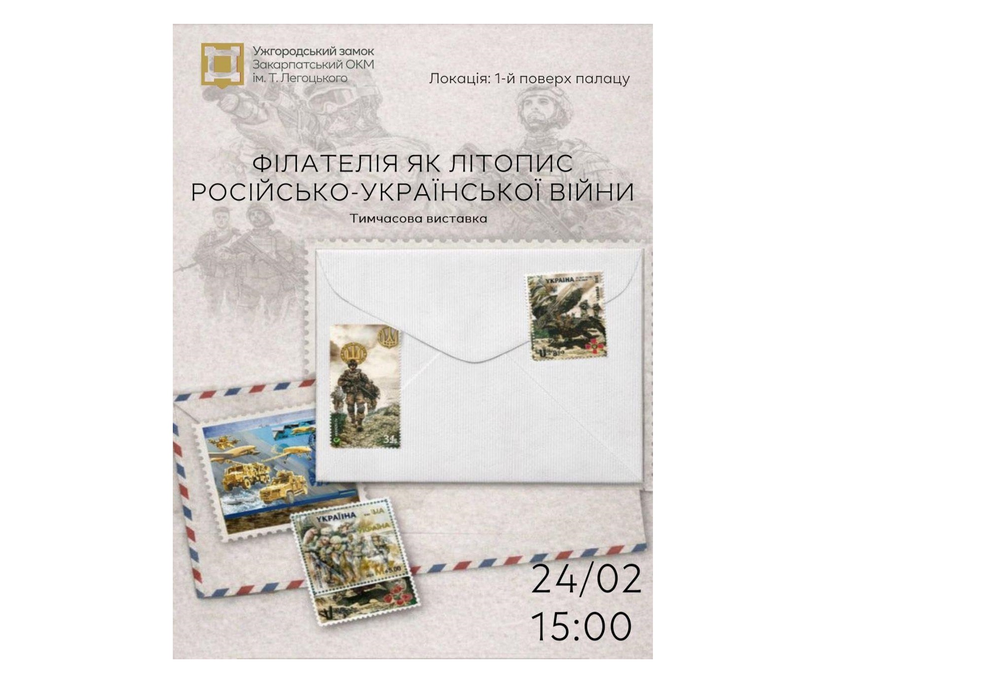 24 лютого 2026 року о 15:00 год. у Закарпатському обласному краєзнавчому музеї ім. Т. Легоцького відбудеться відкриття тимчасової виставки «Філателія як літопис російсько-української війни». Від початку повномасштабного російського вторгнення в Україну у 2022 році поштова марка стала не лише засобом оплати кореспонденції, а й потужним символом національного спротиву, солідарності та віри в перемогу.