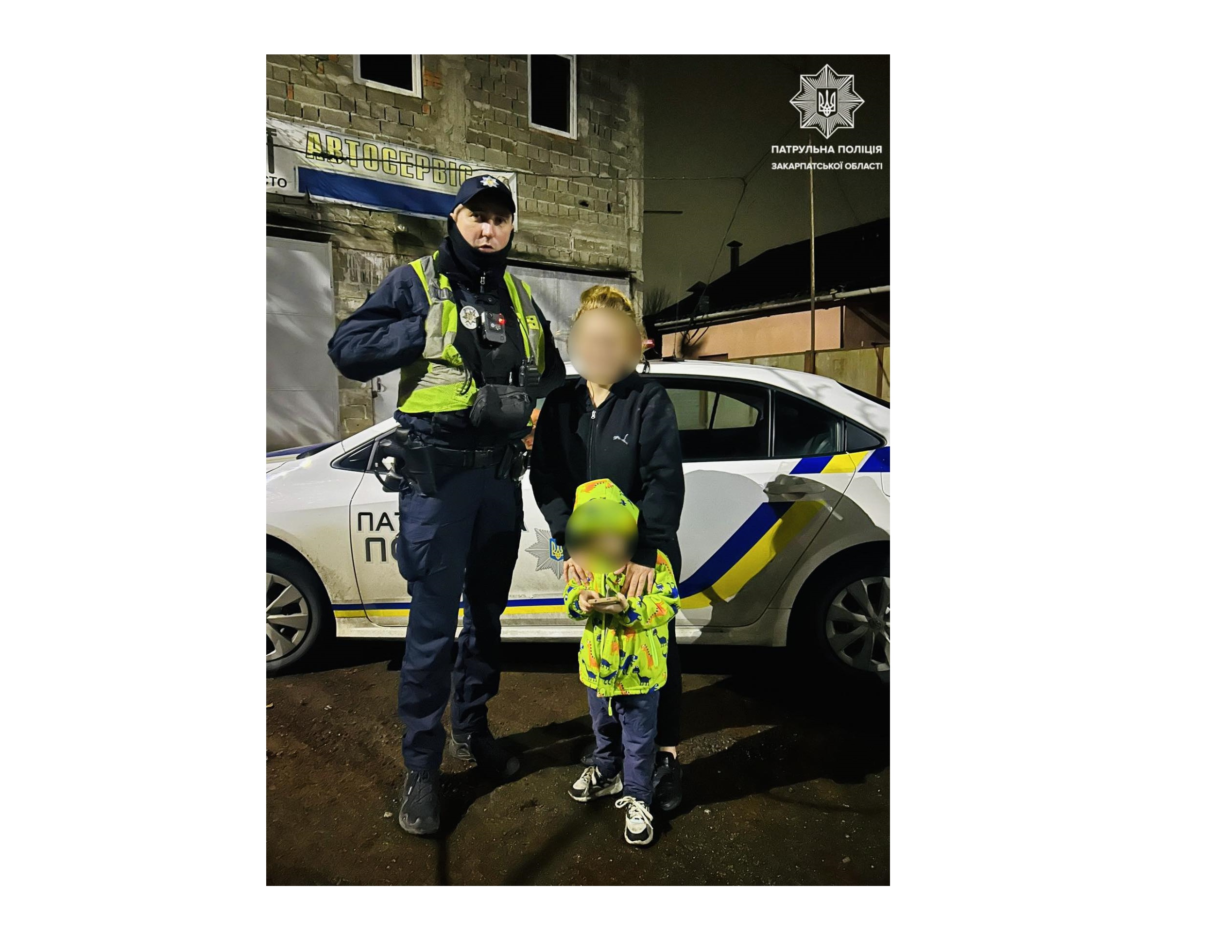 Учора вночі екіпаж патрульних отримав виклик про виявлення дитини на вулиці Залізничній, в Мукачеві. На місці події заявник повідомив, що помітив малолітнього хлопчика, який блукав вулицею без супроводу дорослих.