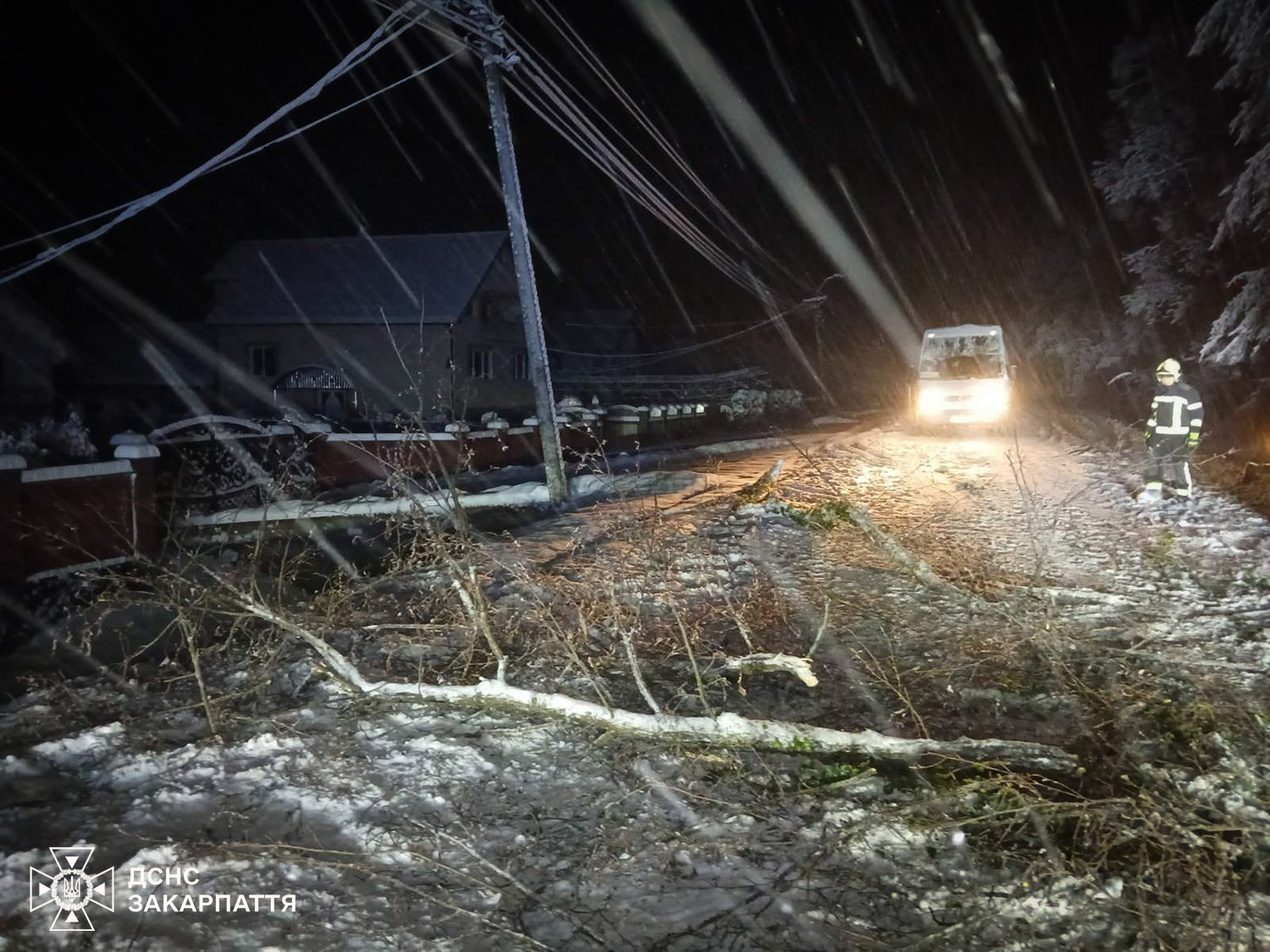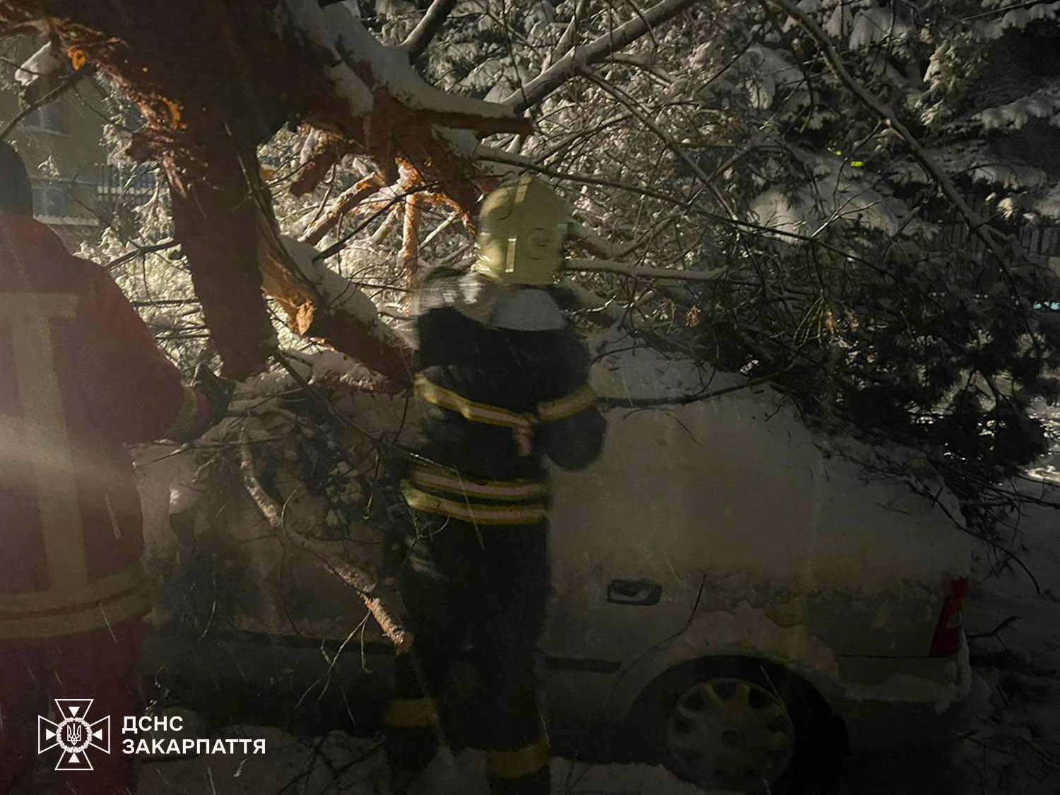 Так, у ніч на 8 січня, близько 03:00, у місті Виноградів на вулиці Копанській через перезволоженість та значну кількість снігу дерево впало на проїжджу частину автошляху та автомобіль Audi, який рухався у напрямку міста Хуст. Внаслідок цього транспортний засіб було пошкоджено, а рух на цій ділянці дороги тимчасово обмежено.