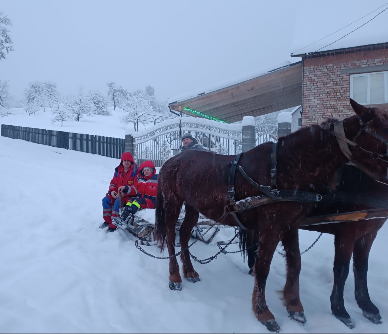 На Тячівщині медики "швидкої" на конях із санями рятували життя молодому хлопцю