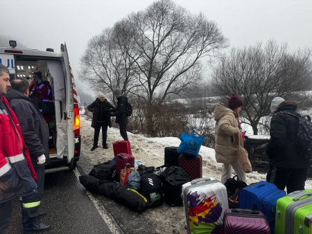 Та зимова дорога виявилась підступною. Через ожеледь мікроавтобус Mercedes Sprinter раптово з’їхав з траси й перекинувся на бік...
