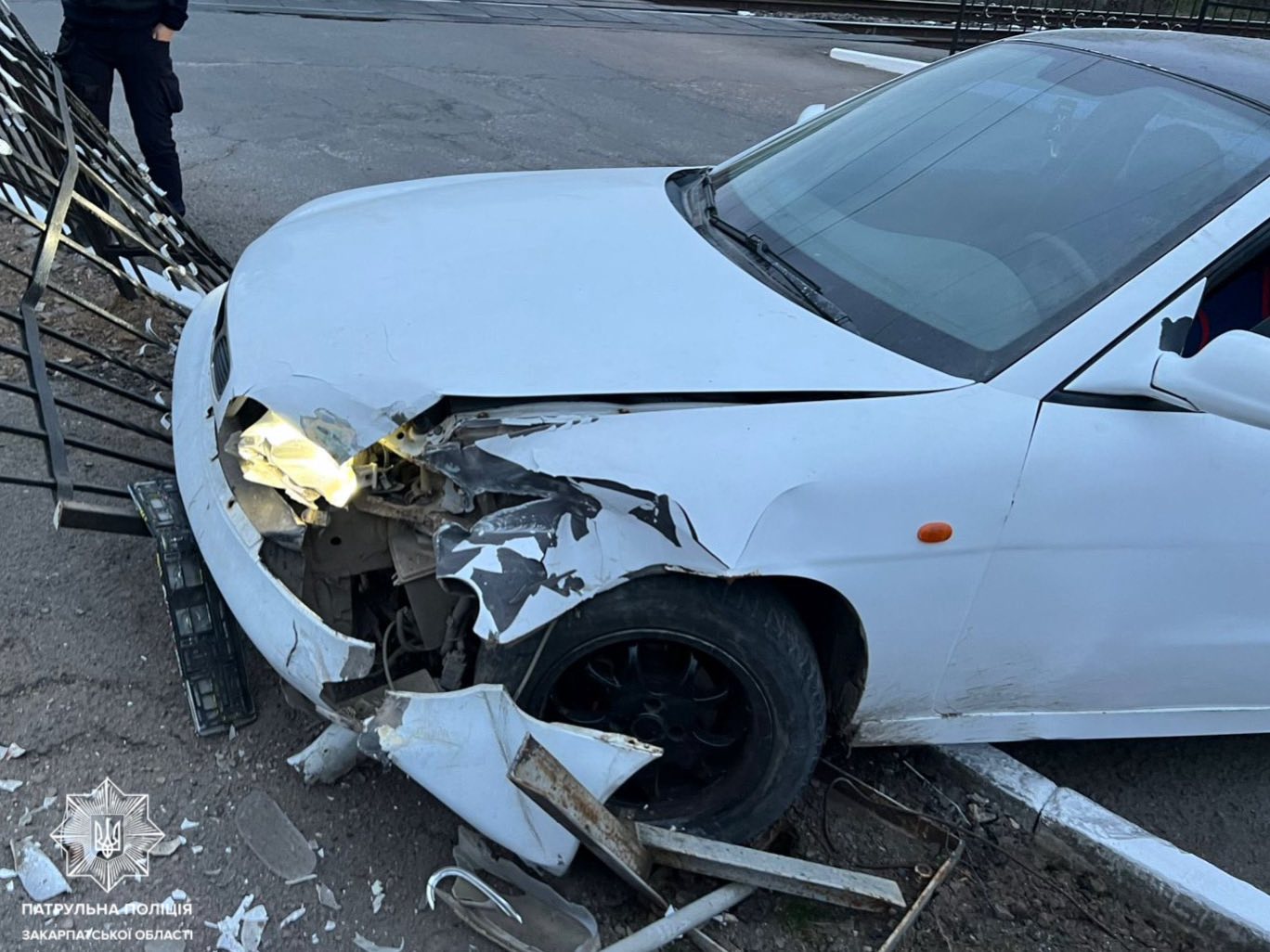 Прибувши на місце події, інспектори виявили транспортний засіб Daewoo, водій якого здійснив наїзд на огородження залізничного переїзду, внаслідок чого пошкодив його. Водія на місці події не було.