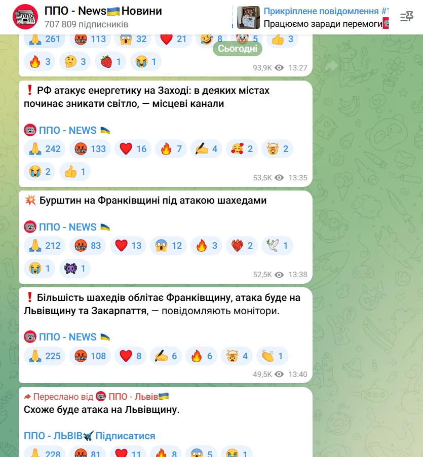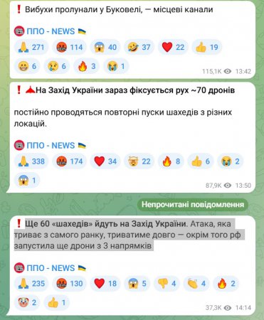 Закарпатська ОВА сьогодні, 1 квітня, о 13:25 оголосила повітряну тривогу. Мирослав Білецький зазначає про загрозу БПЛА. Схожа інформація розміщена на сторінці Закарпатської ОВА. Людей закликають бути в укриттях.