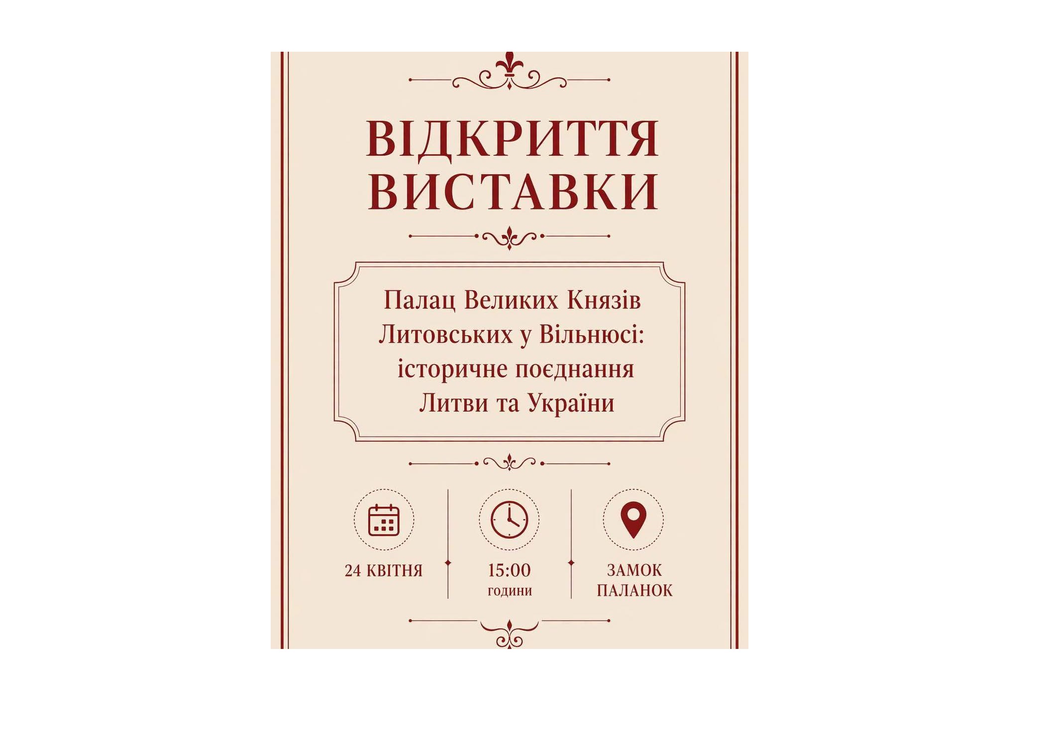 У замку Паланок запрошують на відкриття виставки «Палац Великих Князів Литовських у Вільнюсі: історичне поєднання Литви та України»