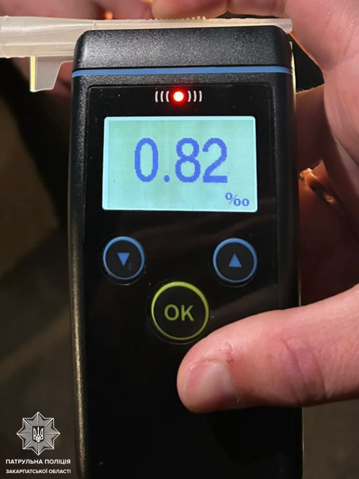 Під час спілкування з водієм-винуватцем пригоди патрульні помітили ознаки алкогольного спʼяніння. Молодику запропонували пройти огляд на стан спʼяніння. Результат тесту підтвердив нетверезе керування — 0,82‰ при допустимих 0,2‰.