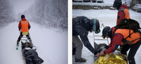 На Ужгородщині гірські рятувальники транспортували травмованого сноубордиста