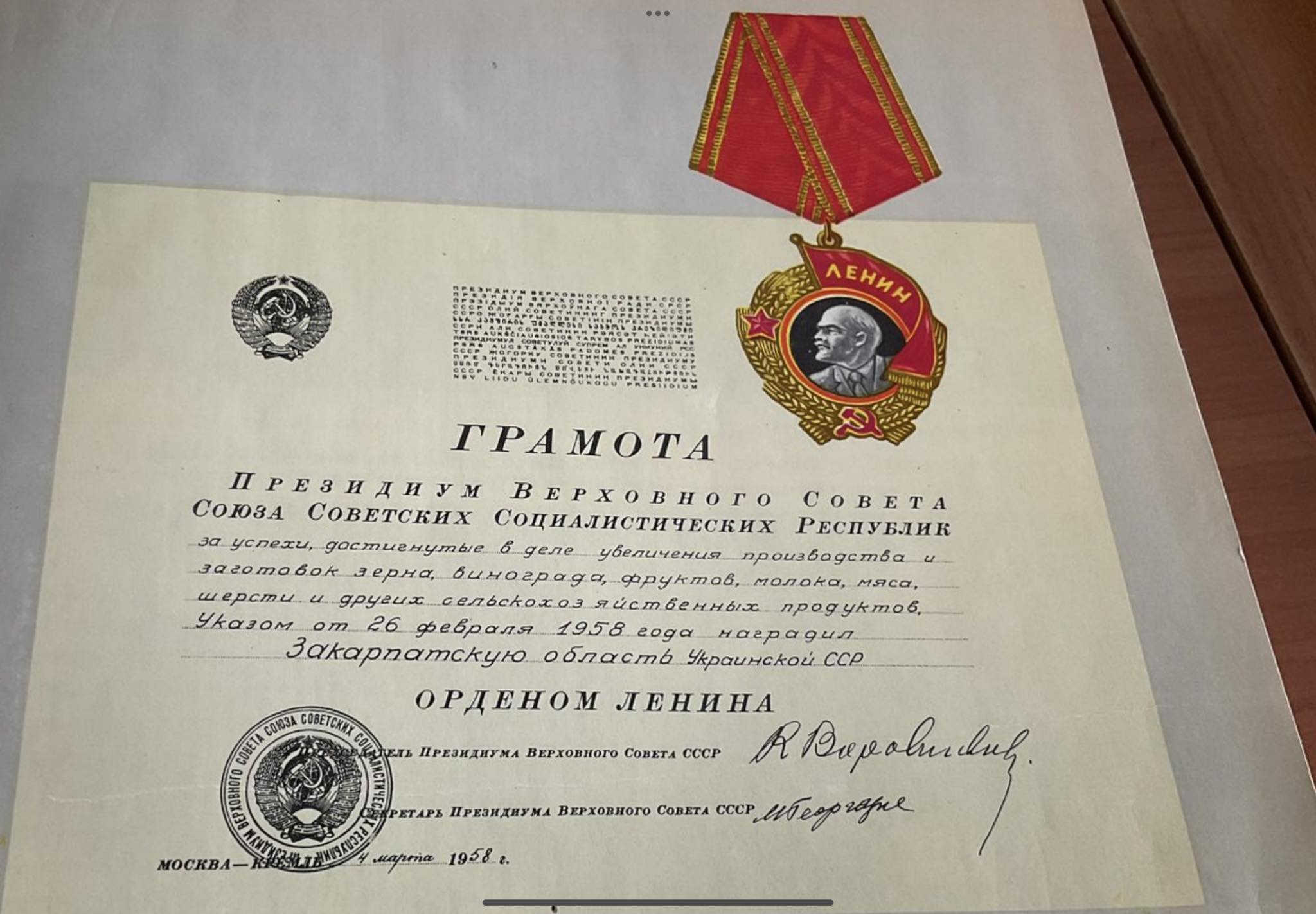 26 лютого 1958 року Закарпатська область нагороджена Орденом Леніна за успіхи в сільському господарюванні.