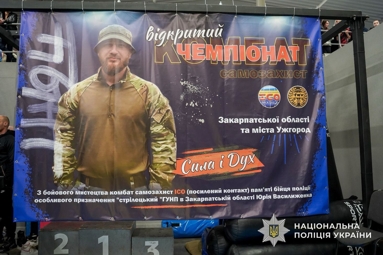 Учора на базі комплексу «Гармонія» в Ужгородському районі відбувся відкритий чемпіонат Закарпатської області та міста Ужгород із бойового мистецтва «Комбат самозахист ICO» (посилений контакт). Турнір присвятили світлій пам’яті бійця батальйону поліції особливого призначення (Стрілецький) ГУНП в Закарпатській області Юрія Василиженка — молодого поліцейського, який загинув 10 листопада 2025 року під час виконання бойового завдання на Донеччині.