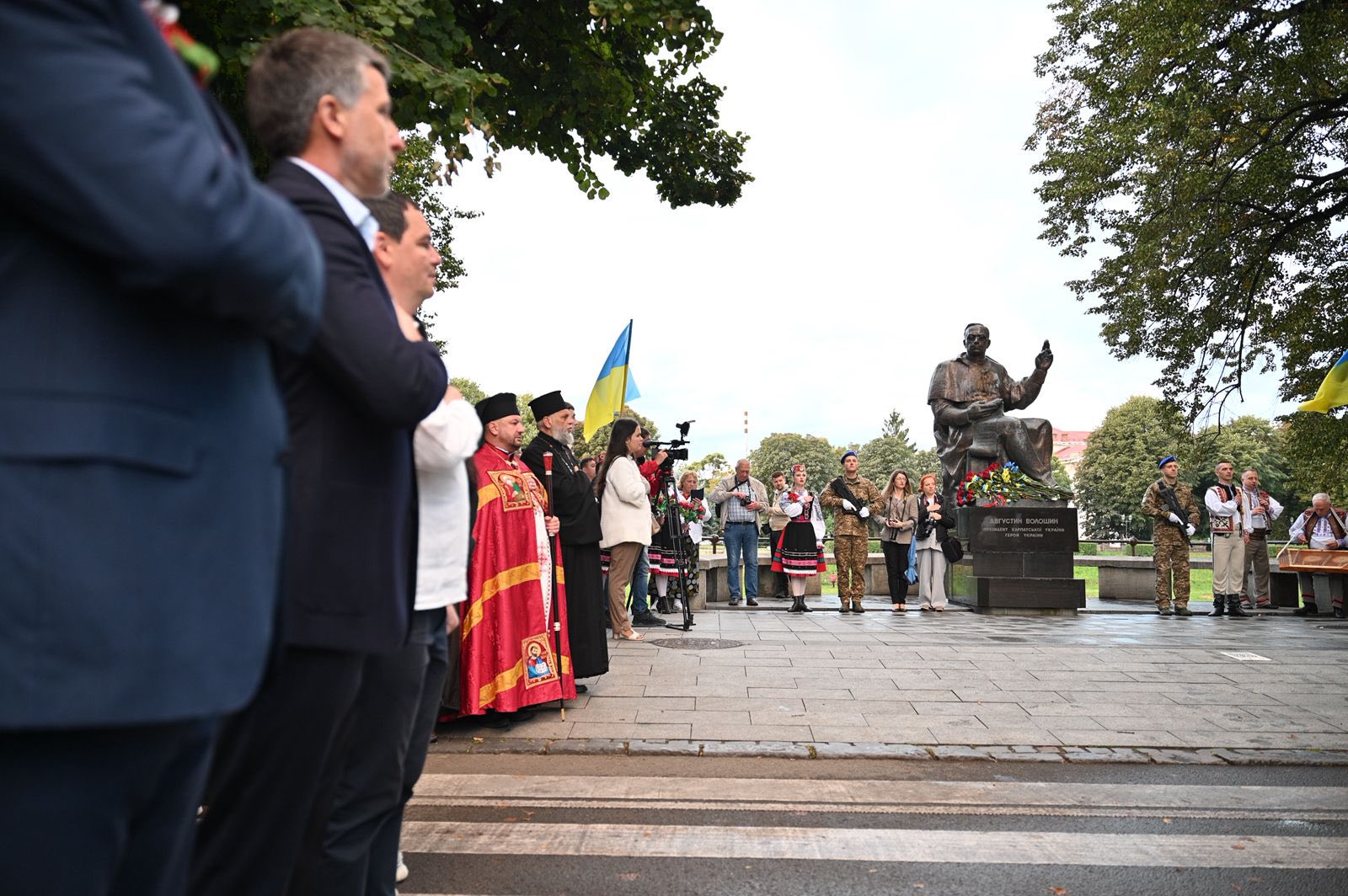 Квіти до пам’ятника Августину Волошину поклали представники влади, військові, силовики, духовенство та містяни. Державний гімн виконав колектив Заслуженого академічного Закарпатського народного хору.