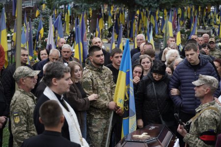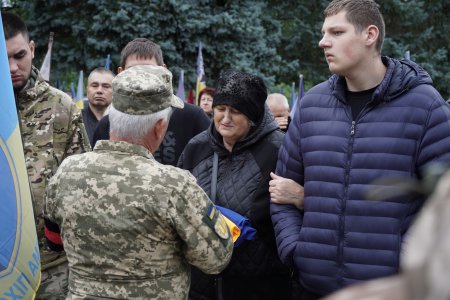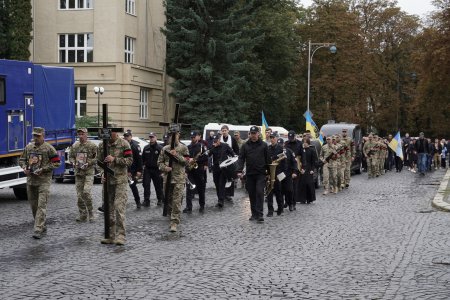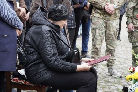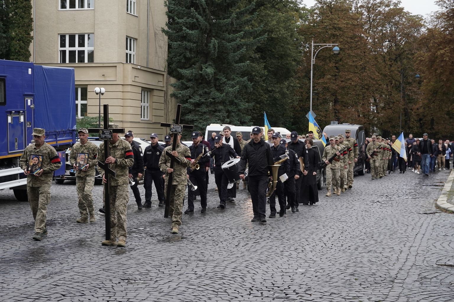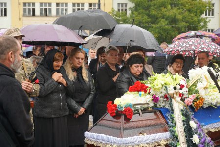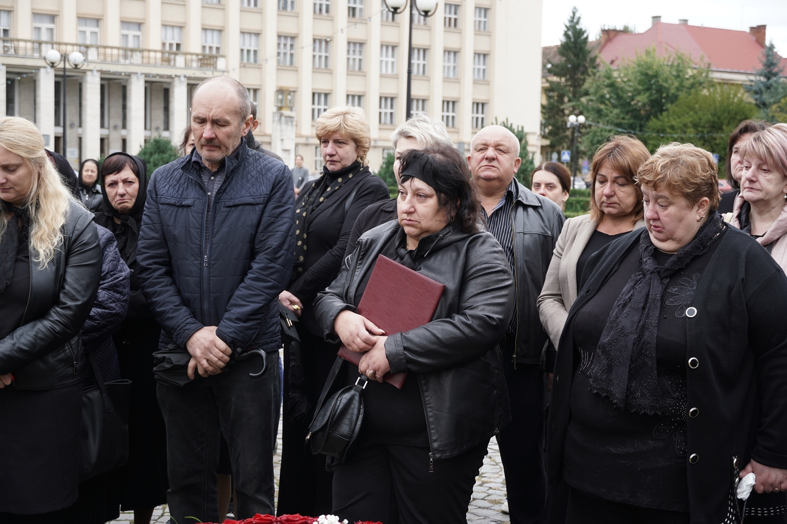 Попрощатися із захисниками на площі Народній прийшли рідні, друзі, колеги, військові, побратими, міський голова Богдан Андріїв та жителі Ужгорода.