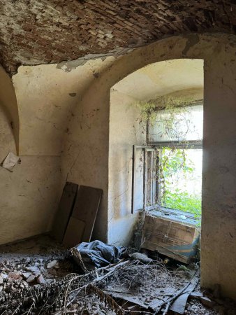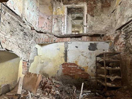 Молодий дослідник Тимофій Фенчак зафіксував на фото внутрішній стан палацу за кілька тижнів до руйнування. На світлинах видно: так, усередині обвалилися перекриття, але товсті кам’яні стіни трималися. Зберігалися склепіння, автентичні дерев’яні дверні блоки. Це були ознаки справжньої архітектурної пам’ятки, а не занедбаного складу.