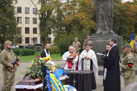 Прощання з воїном відбулося на площі Народній. Провести Героя в останню дорогу прийшли рідні, друзі, бойові побратими, міський голова Ужгорода Богдан Андріїв, військовослужбовці та містяни.