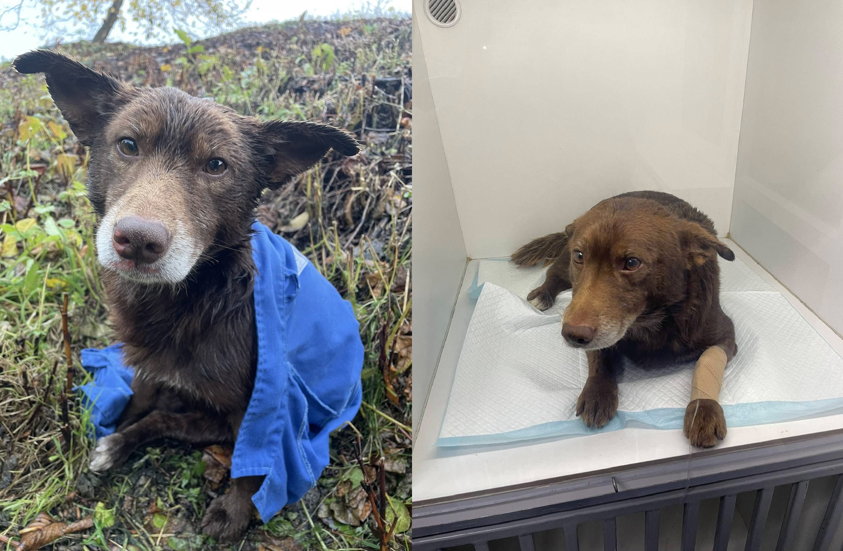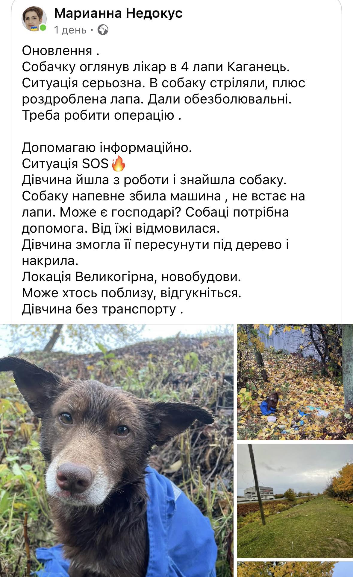 Як зазначено в дописі, огляд та рентген показали наявність у тілі тварини двох куль. Окрім цього, у собаки роздроблені кістки на лапі.