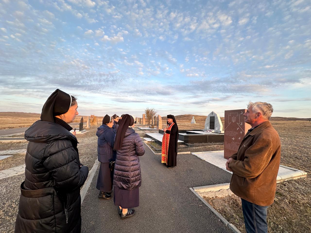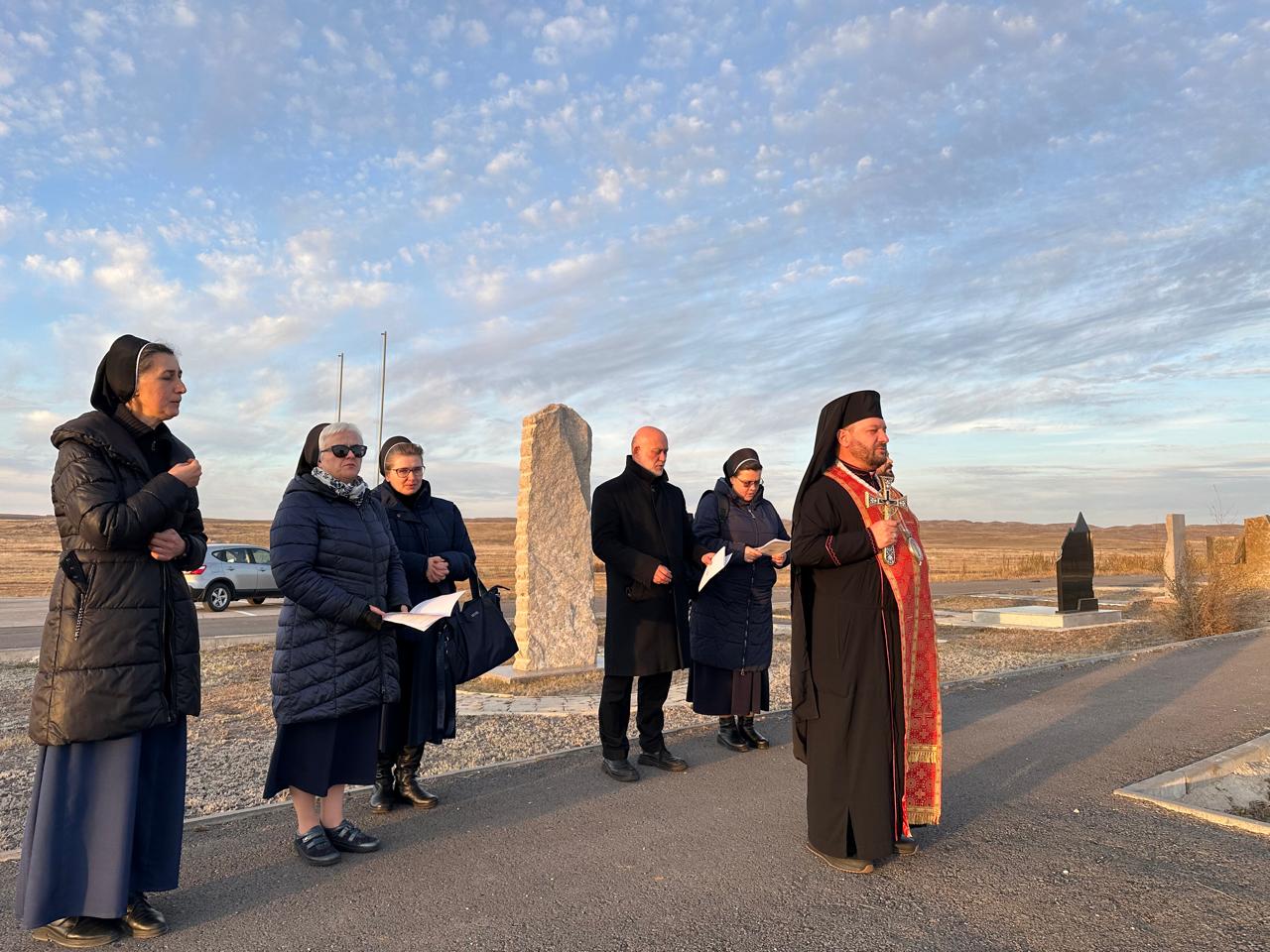 Під час свого перебування владика Теодор та о. Петро звершили молитву за загиблих, а також панахиду на території меморіалу.Цей жест - служіння пам’яті й віри, є важливим як для нашої Церкви, так і для всіх народів, чиї долі переплелися в цьому місці. Візит також має на меті зміцнення єдності та співпраці між греко-католицькою єпархією та місцевою спільнотою в Казахстані.