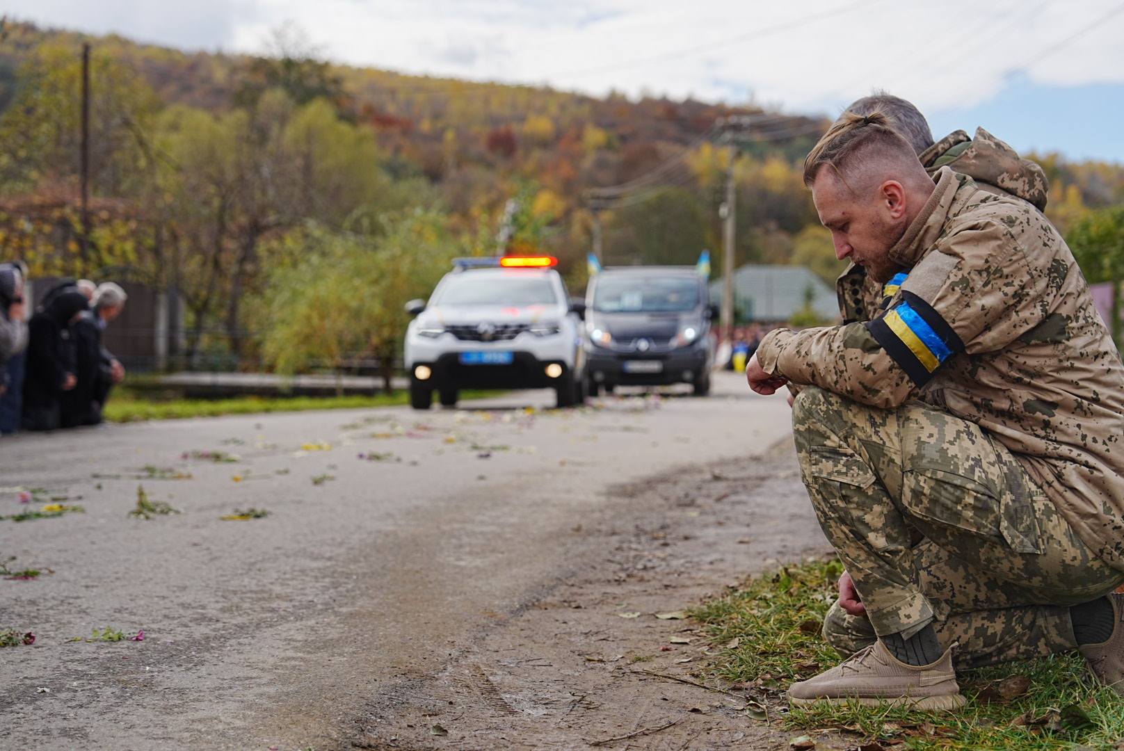 Сьогодні вся громада схилила голови в глибокій шані. Люди на колінах стояли обабіч дороги, тримаючи в руках прапори, квіти, із болем і вдячністю в серці дякували воїну за його подвиг, за мужність, за те, що він віддав життя, аби ми могли жити під мирним небом.