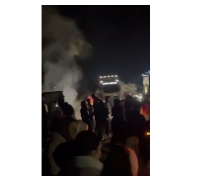 Також мешканці підпалили карантинний блокпост. Людей на місці події дуже багато.