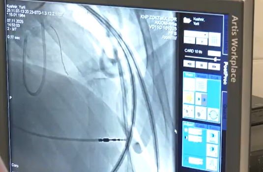 Потім почалася задишка, по сходам міг підніматися лише із зупинками. Так діагностували рідкісне захворювання - гіпертрофічна кардіоміопатія. Їхати в Київ пацієнту 60+ і робити операцію на відкритому серці – не варіант. За любки погодився на малоінвазивне втручання тут на місці. Операцію пацієнту виконав Василь Логойда. І це вже не перше успішне таке малоінвазивне втручання при рідкісній патології. Простими словами, коли стінка серцевого м’язу надміру розростається і через це порушується викид у аорту. Звідси задуха, загальна слабкість, біль, навіть втрата свідомості та життєзагрозливі аритмії, що може призвести до раптової смерті. Лікар каже, процедура проводиться не під загальним наркозом, а під легкою седацією. Чрез три дні пацієнт вже активний, а через тиждень – виписка. Далі в судину заводять спеціальний провідник, каже Василь Логойда, по якому вводять балончик, що роздувається і перекриває кровотік. Імовірність рецедиву є, проте лікарі наголошують – у таку разі процедуру повторюють і пацієнт далі живе. Такі малоінвазивні втручання у кардіоцентрі виконали три. Вперше у липні. Спостерігали за результатом – були задоволені: і пацієнт і медик, тому вирішили продовжити успішну практику у закладі. Запросили до співпраці фахівців з інституту імені Амосова під керівництвом знаного закарпатця - академіка Василя Лазоришинця, які допомогли з досвідом. Зараз виконуватимуть операції самостійно. Майже сотню пацієнтів з такою патологією пролікували у кардіоцентрі минулоріч. Мова про терапевтичний та хірургічний супровід, проте класичним способом. А зараз ще й малоінвазивний метод доступний як закарпатцям, так і вимушеним переселенцям, а найголовніше наразі – захисникам.