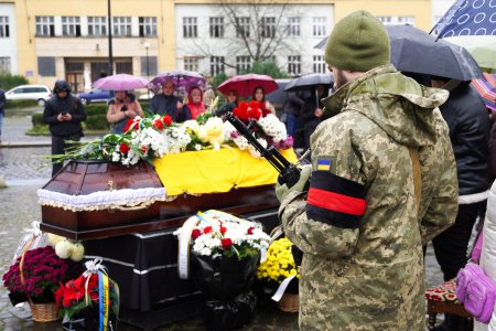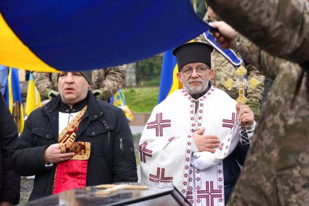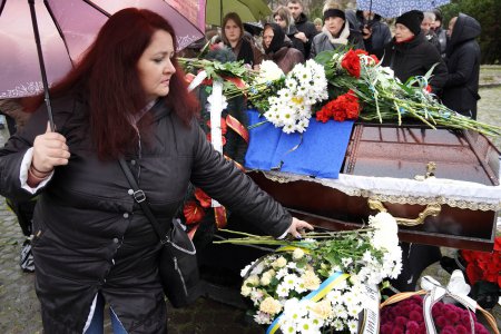 Чин похорону відбувся на площі Народній. Віддати шану полеглому прийшли рідні, друзі, сусіди, військові, ужгородці, міський голова Богдан Андріїв.