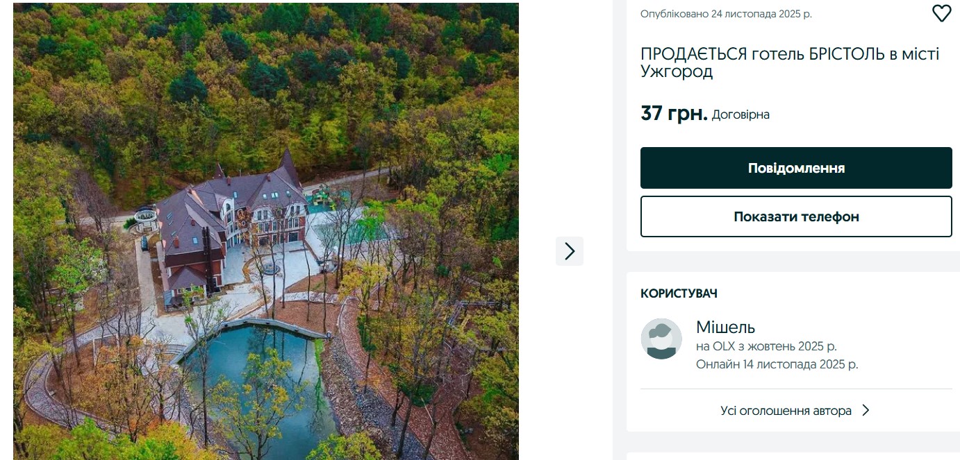 Повну ціну не називають. Раніше готель згадувався у розслідуванні про майно нардепа Миколи Тищенка.
