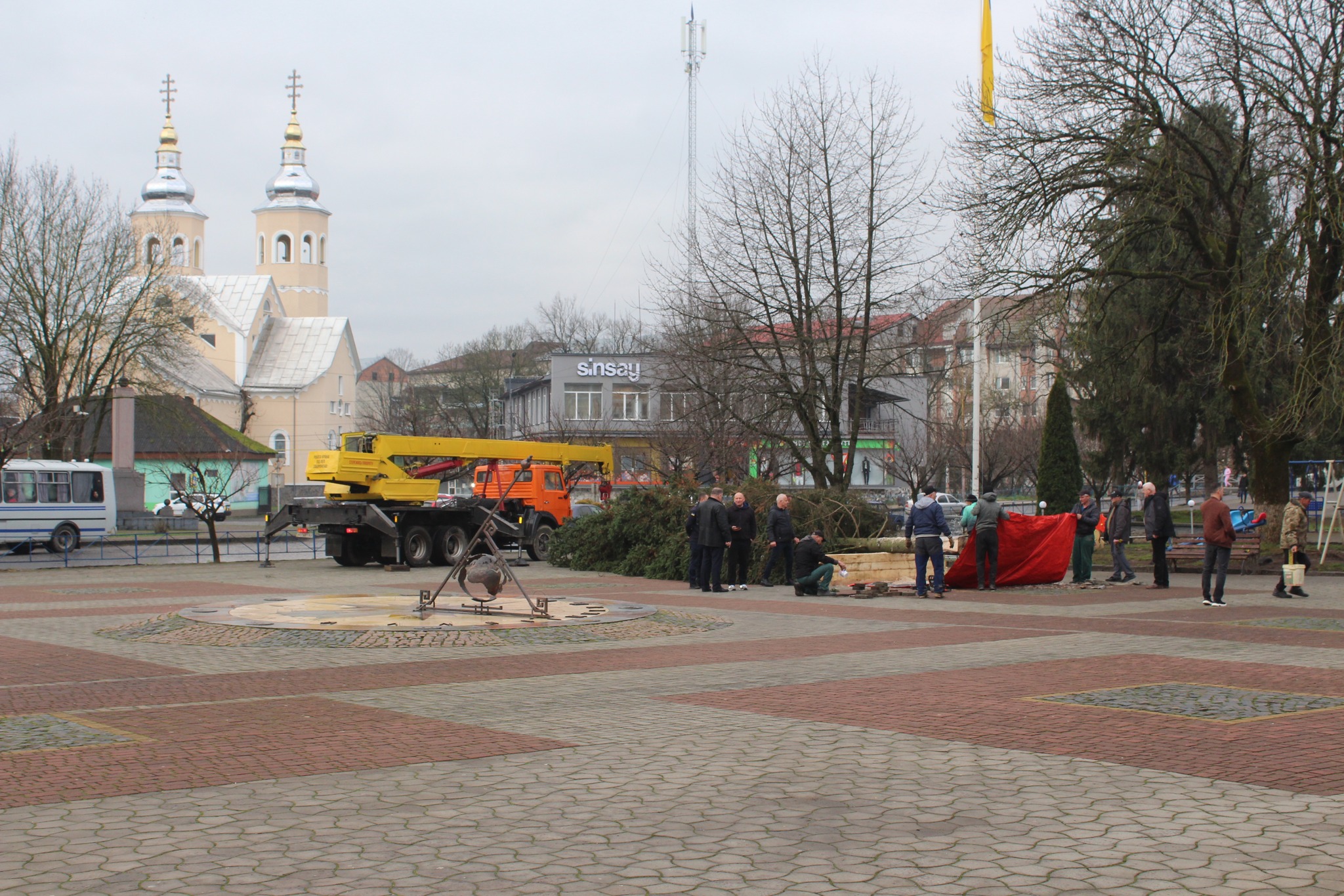 В Іршаві до новорічно-різдвяних свят встановлюють живу ошатну дванадцятиметрову ялинку