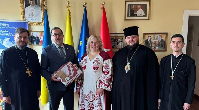 У свою чергу, українська паломницька група на чолі з Владикою Варсонофієм передали отцю Джовані ікону Богородиці "Покрова Українського воїнства".