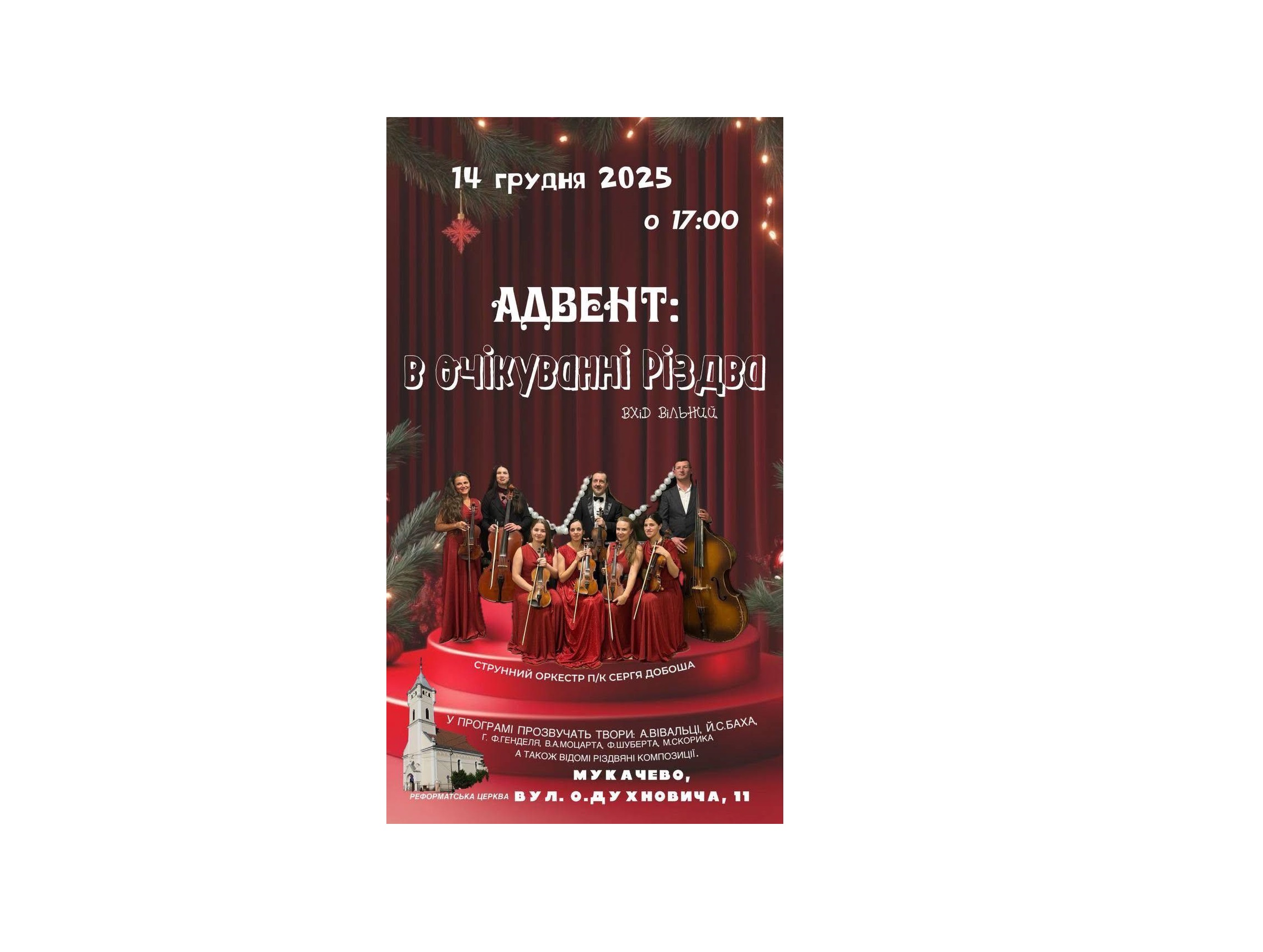 В Мукачеві струнний оркестр представить концертну програму «Адвент: в очікуванні Різдва»