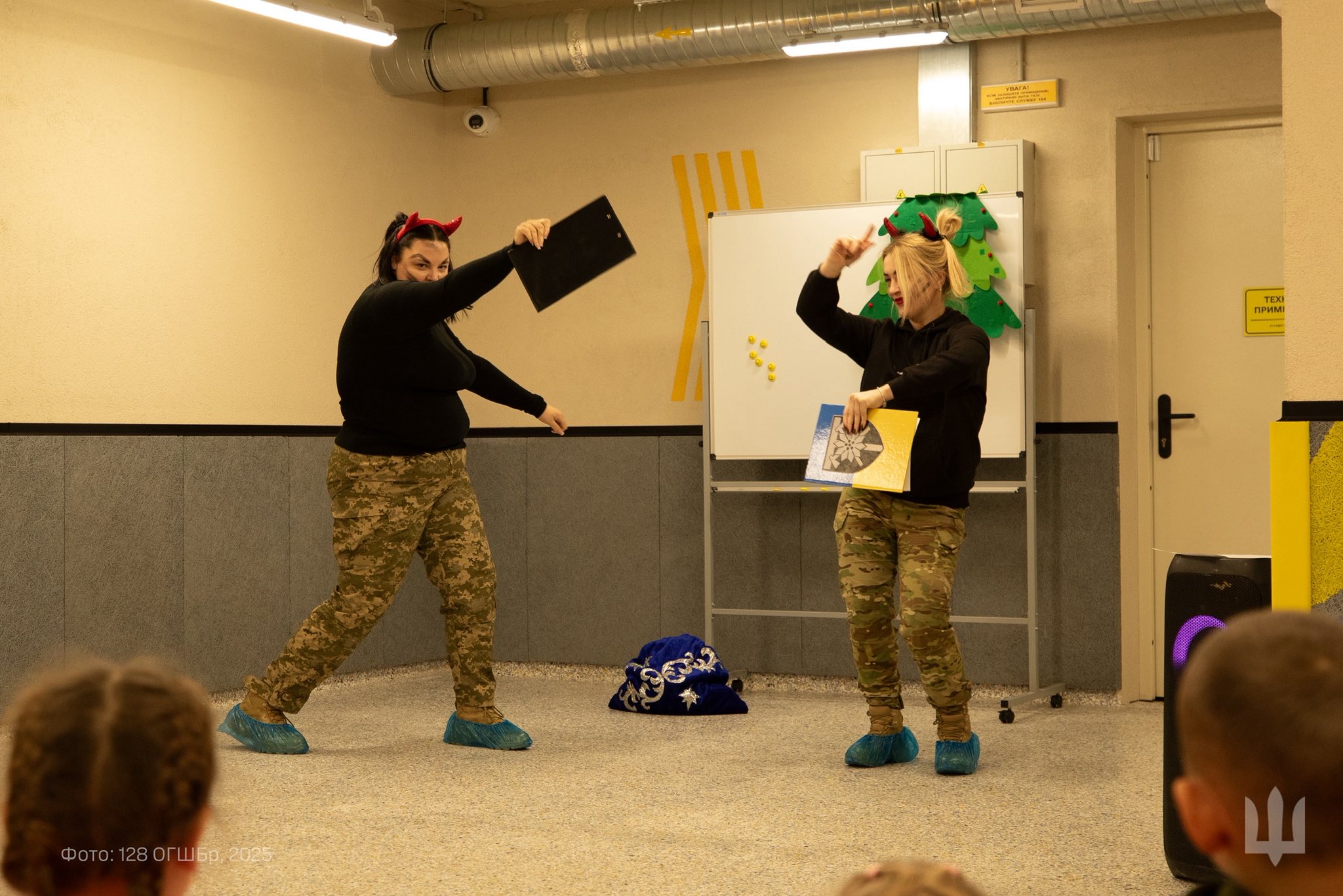 Бійці підготували для дітей видовищно-театралізований захід з конкурсами, піснями від «Культурного десанту», вікторинами та звичайно з солодкими подарунками.