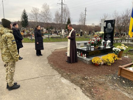 На могилі загиблого Героя військовий капелан Олег Сорока відслужив заупокійну літію. Присутні запалили поминальні лампадки та поклали квіти, віддаючи шану полеглому воїну.