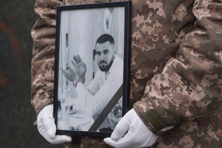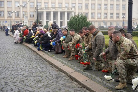 Чин похорону відбувся на площі Народній. Віддати шану полеглому прийшли рідні, друзі, сусіди, військові, ужгородці, міський голова Богдан Андріїв.