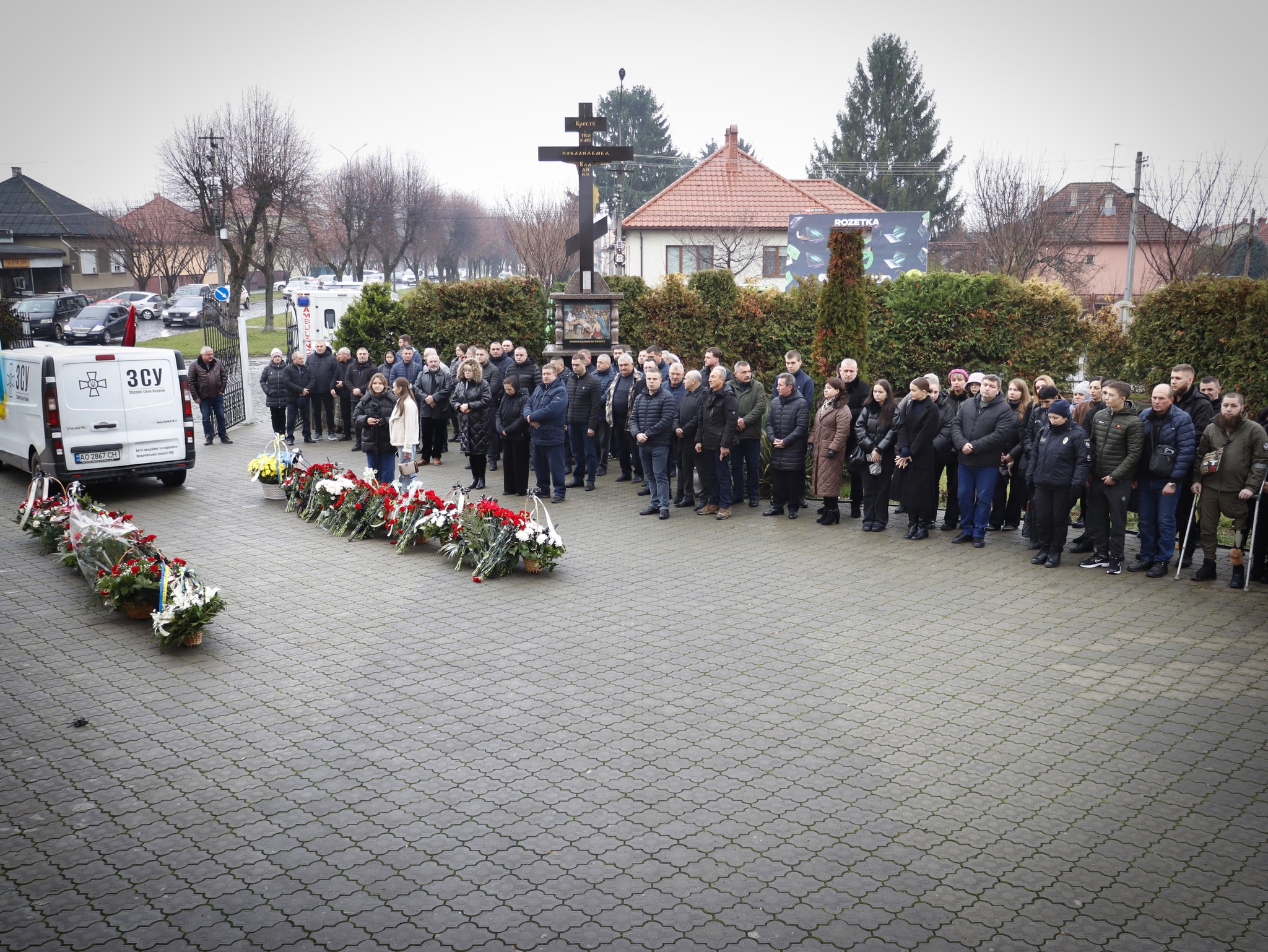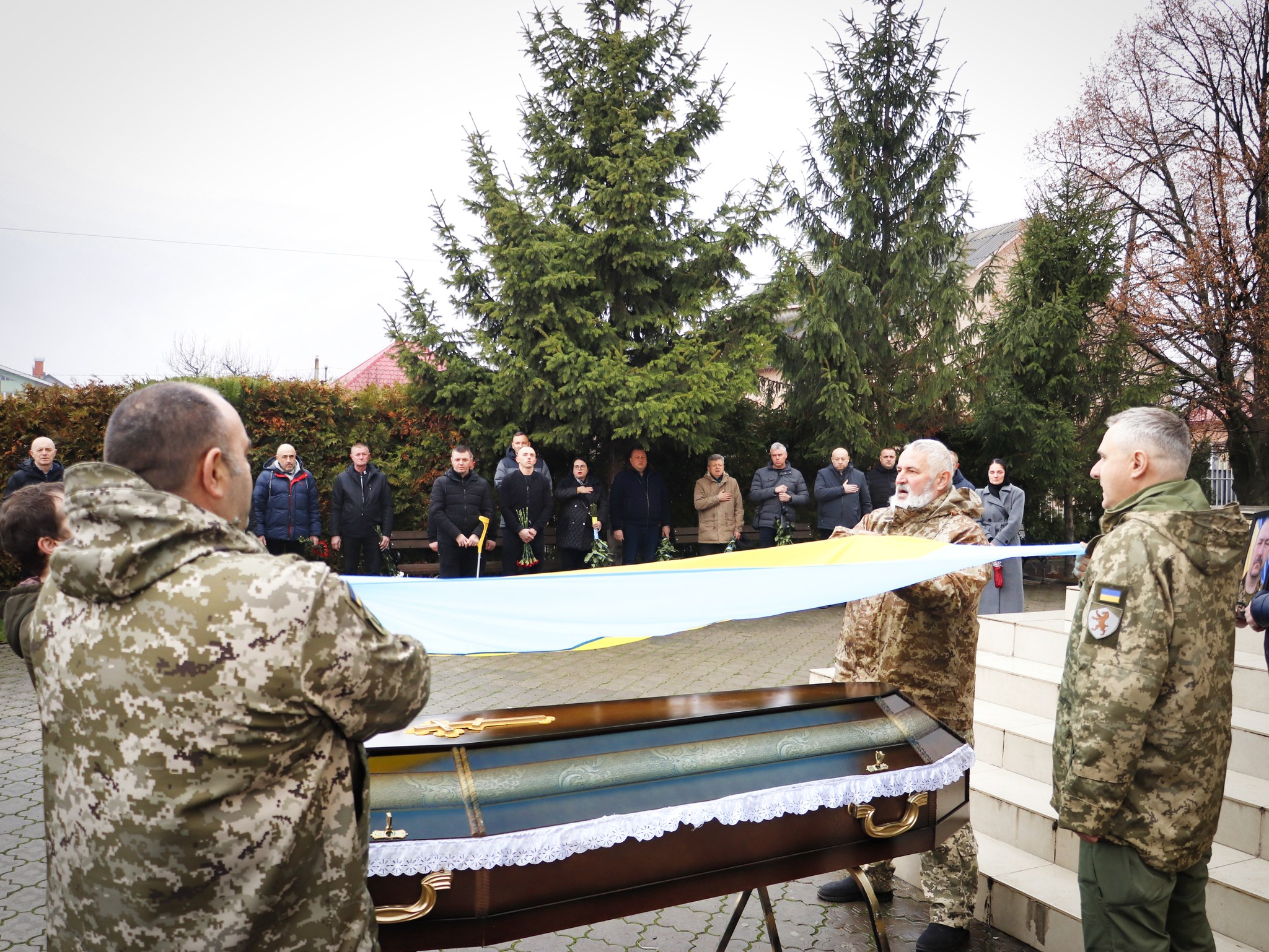 Попрощатися з Героєм прийшли сотні людей: сім’я, друзі, колеги, побратими та небайдужі мукачівці. Люди навколішках проводжали полеглого воїна в останню дорогу. Поховали захисника на Алеї Слави центрального кладовища.
