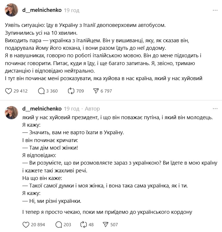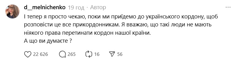 Про це повідомила українка Дар'я Мельніченко