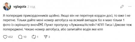 У коментарях під дописом, ми бачимо, що з авторкою допису зв'язався депутат Ужгородської міської ради та журналіст Віталій Глагола, який попередив прикордонників України про перетин нашого кордону проросійським італійцем та його дружиною. "Служба божа України вже займається" - додав журналіст.