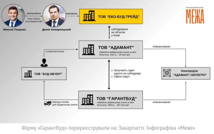 консорціуму «АДАМАНТ І КІНТЕГРО» та слідують в субпідрядах ТОВ «Еко-Буд-Трейд», що має ознаки контролю Денисом Комарницьким.